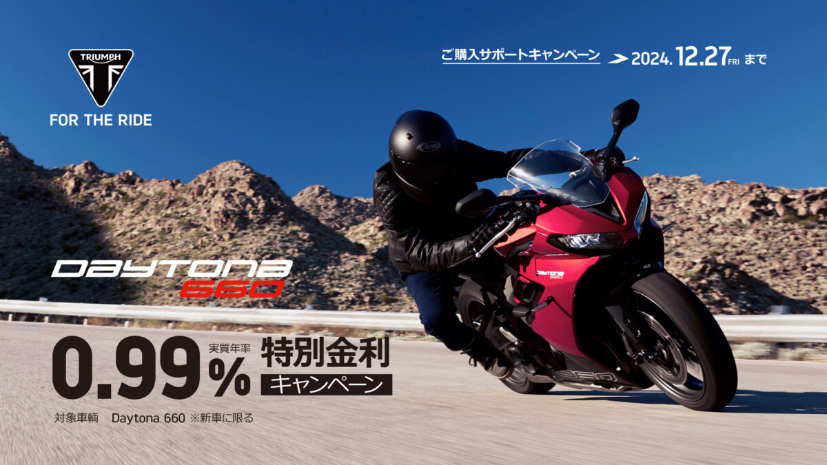 人気の Daytona 660 を対象とした 0.99% 特別低金利ローンが登場!