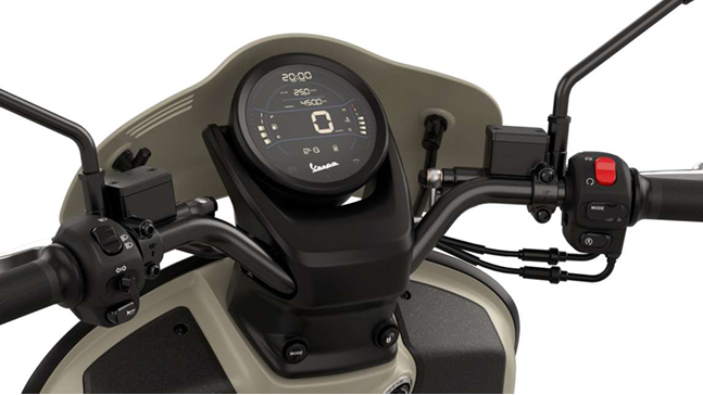 新型のデジタルLCDインストルメントの採用により、豊富な走行情報(最高速度、平均速度、瞬間燃費、平均燃費、航続距離、バッテリー電圧)の表示が可能になったほか、ベスパ MIAシステム(オプション設定)を介して車両がスマートフォンと接続されていれば、通話、メッセージ、音声通知が表示されます。