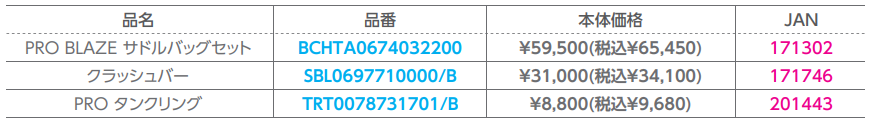 SW-MOTECHからは、ツーリングに便利なサドルバッグセット、クラッシュバー、タンクバックを装着するためのタンクリングをラインナップ。価格は、サドルバッグセットが65,450円、クラッシュバーが34,100円、タンクリングは9,680円(全て税込)である。