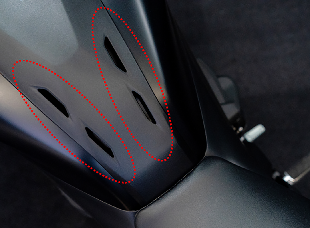 その実現のため、エアクリーナーボックス、吸気ダクト、吸気ファンネル、吸気口カバーなどの形状やレイアウトを検証・調整しながら最適化。吸気口で発生した吸気音がライダーの耳に効率的に届くようレイアウトや燃料タンクカバー4か所の穴の設置など「アコースティック・アンプリファイア・テクノロジー」を採用し、ライダーへ魅力的なサウンドを届けます。