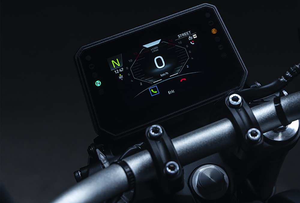 また、専用アプリ「Y-Connect(Yamaha Motorcycle Connect)」をインストールしたスマートフォンと車両を接続し、手元でYRCのセッティングを行ったり、さまざまな情報や画像をメーターに表示できます。これにより車両の管理、電話やメールの着信通知など、多様なコンテンツが利用できます。