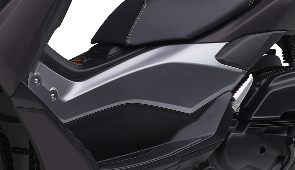 NMAXの力強さ・安定感を表現するため、ボディ外装を一新。前後プロポーションを中心部に凝縮し、車格としてはコンパクトになりつつも、ライダーを包み込むような力強く安定感あるプロポーションを表現しました。またMAXシリーズの代名詞であるブーメラン形状のサイドカバーをアップデート。後方から前にかけて流れるような構成のブーメランは、「YECVT」搭載のエンジンから放たれるエネルギーを車体全体に行き渡らせるイメージです。