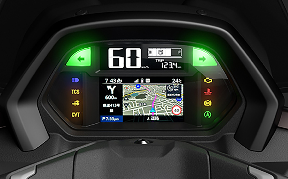 新デザインのディスプレイを採用しました。上下2面構成とし、上部LCDディスプレイ画面には、わずかな視線移動だけで走行中に必要な情報(スピードメーター・オドメーター・燃費・フラッシャー)にアクセス可能にしています。