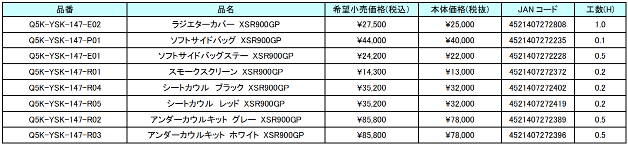 XSR900GP用 新アクセサリー及び、既存適合アクセサリーのご案内