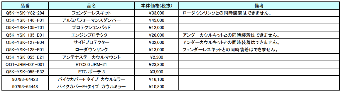 サイドプロテクター、エンジンプロテクターとの同時装着はできません。