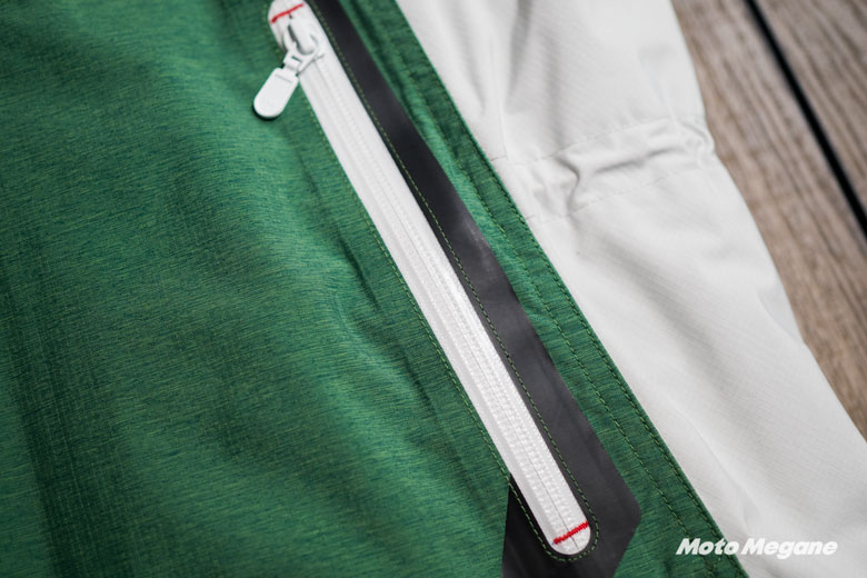 カラバリだけでなくデザイン上の色の切り替えやロゴの位置一つとっても少々派手なので従来のライディングジャケットの印象が強い。ライジャケ×アウトドアのお手本のようなジャケットだ。