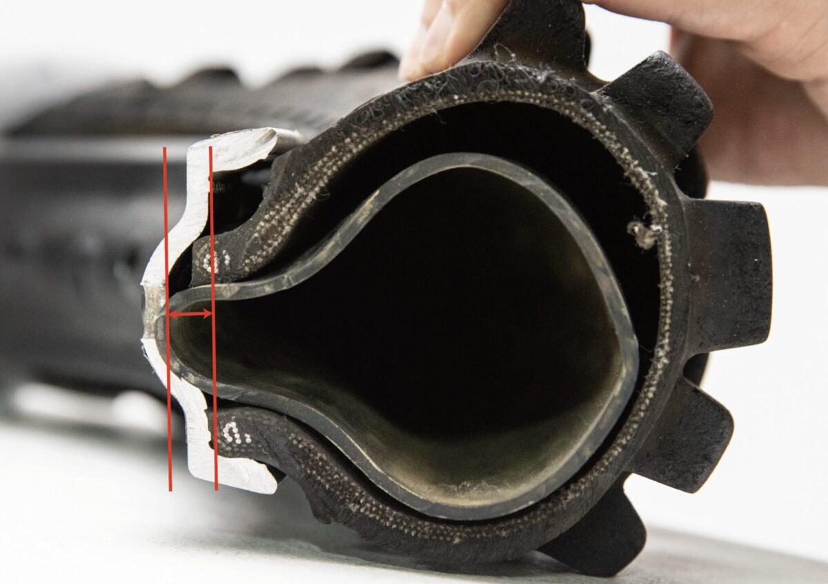 なので、タイヤを輪切りにしてみました! ビードを落とすと…