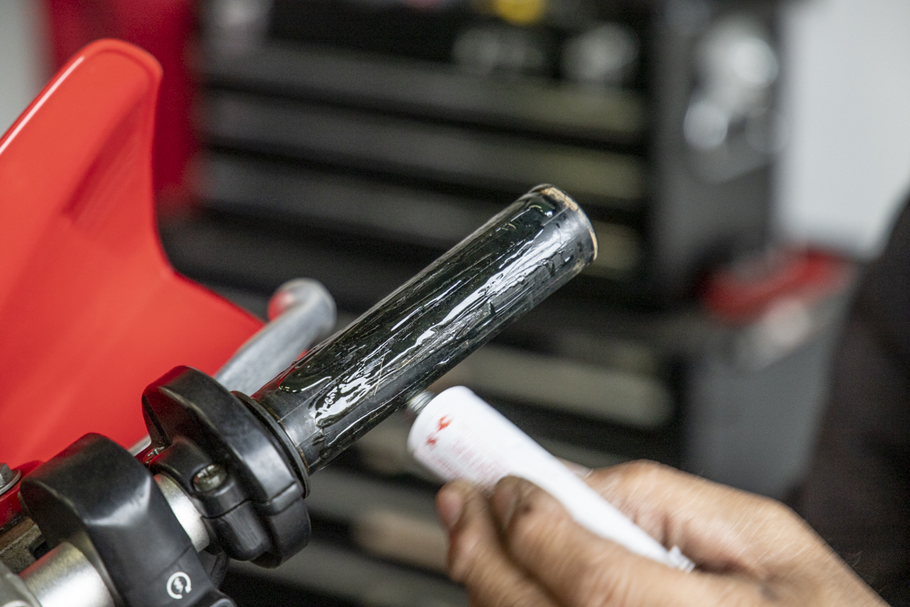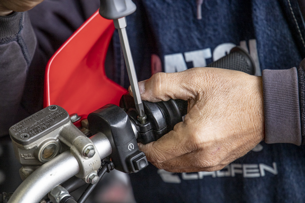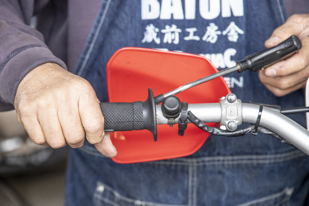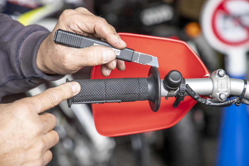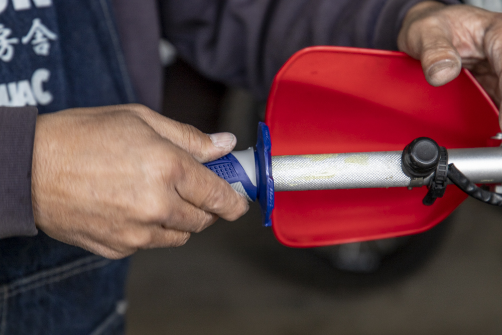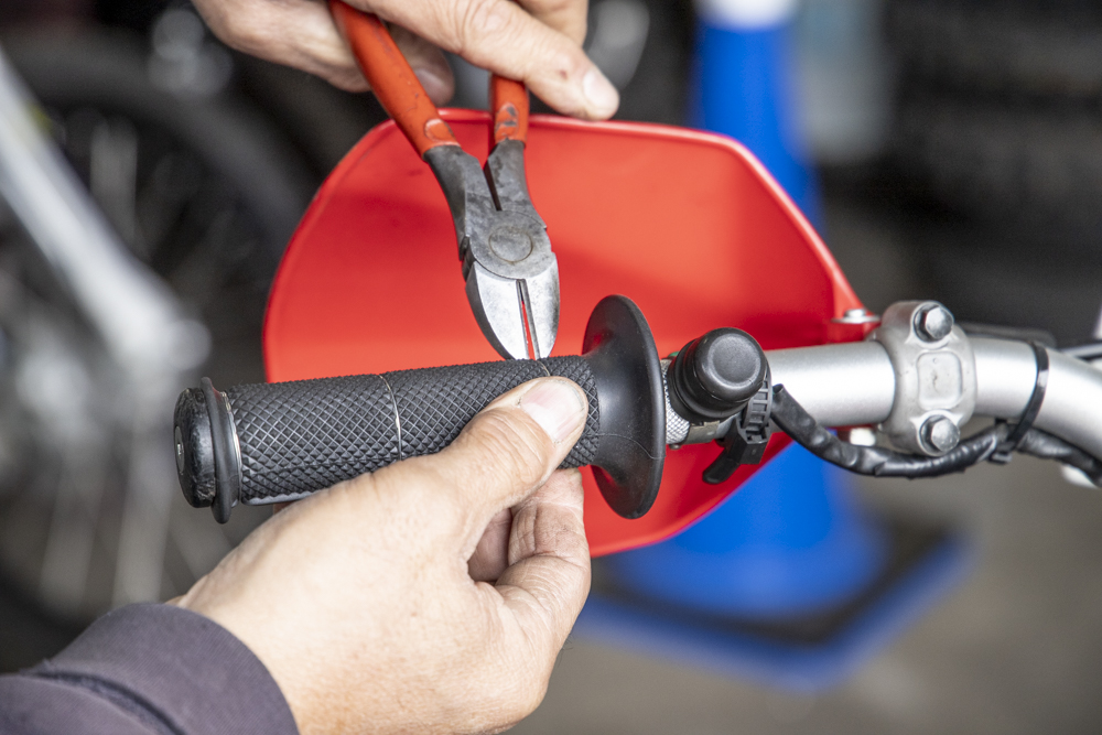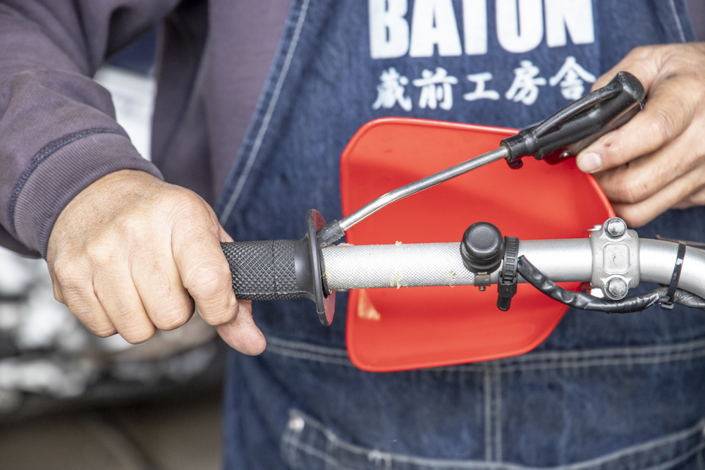 今回交換するのはこちらのグリップ。まずはクラッチ側を例に解説してもらいます。