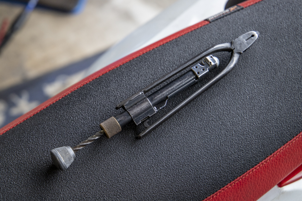 ワイヤリングをするにはワイヤーツイスターが必要です。これは渡辺さんが30年以上愛用しているワイヤーツイスター。「ワイヤリングはワイヤーツイスターがないとできません。もしツイスターを持っていないのであれば、やらない方がマシですよ」と渡辺さん。
