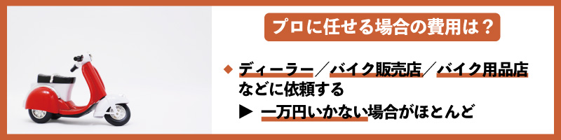 自ら作業をおこなうことが難しい場合はディーラー、バイク販売店、バイク用品店などに依頼する方法もあります。