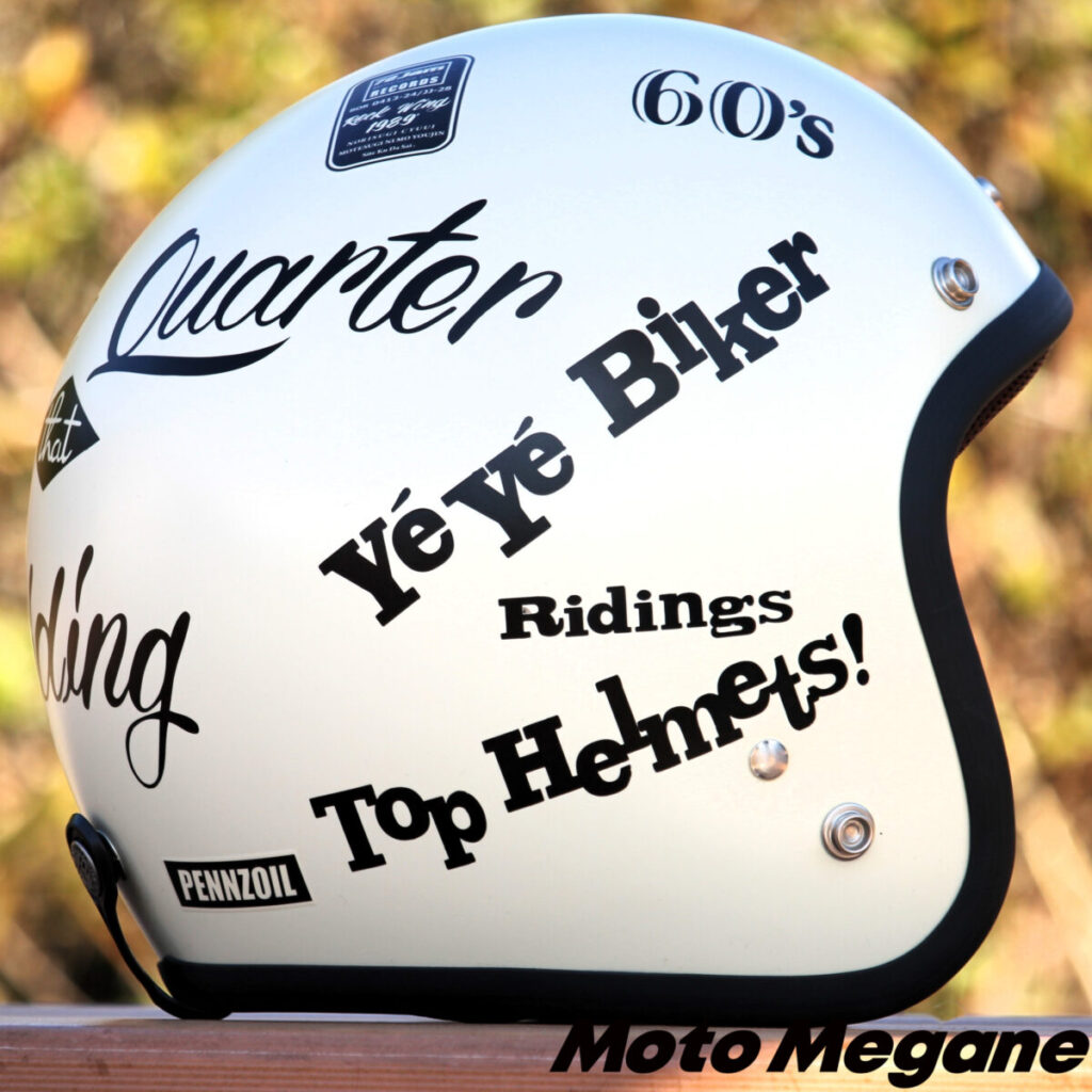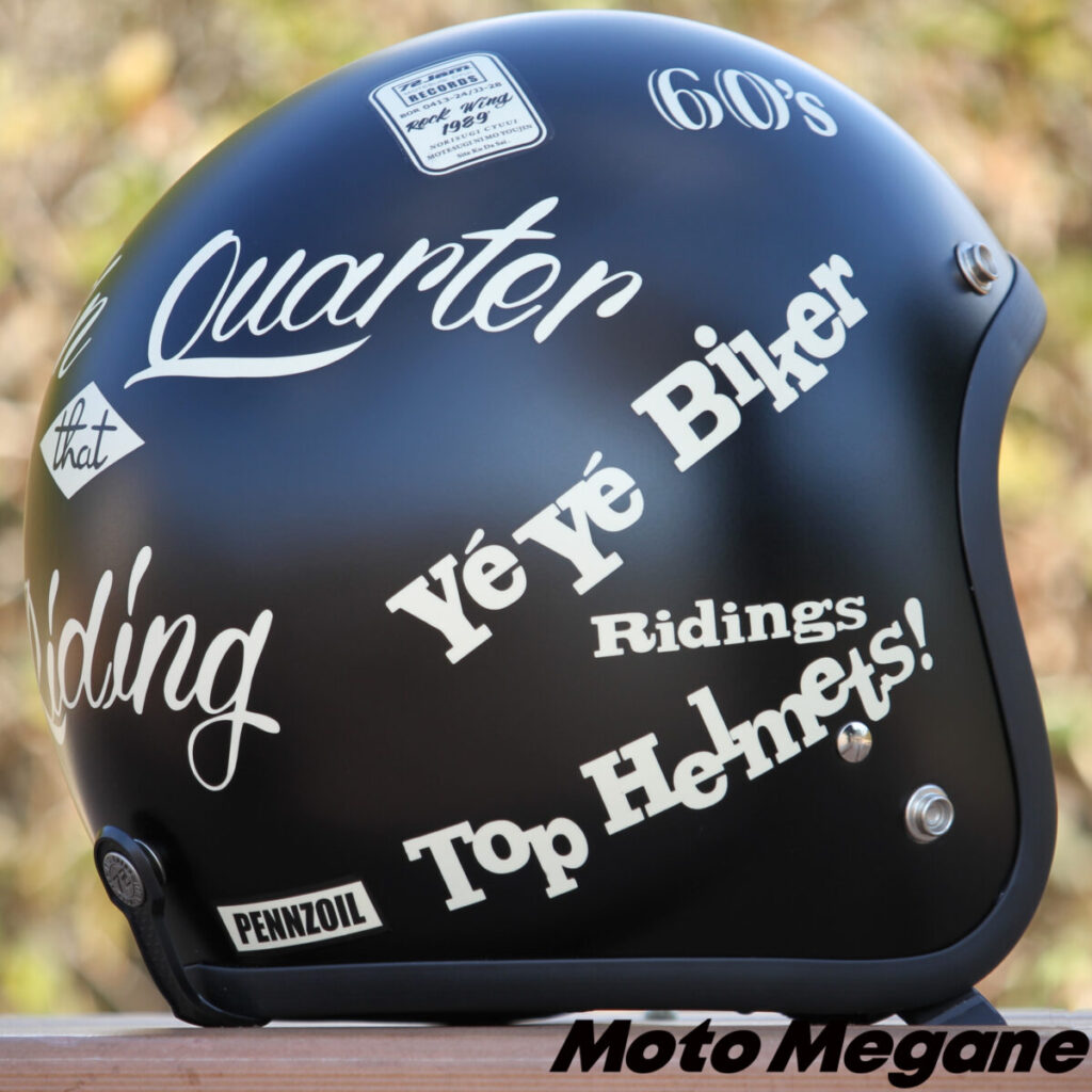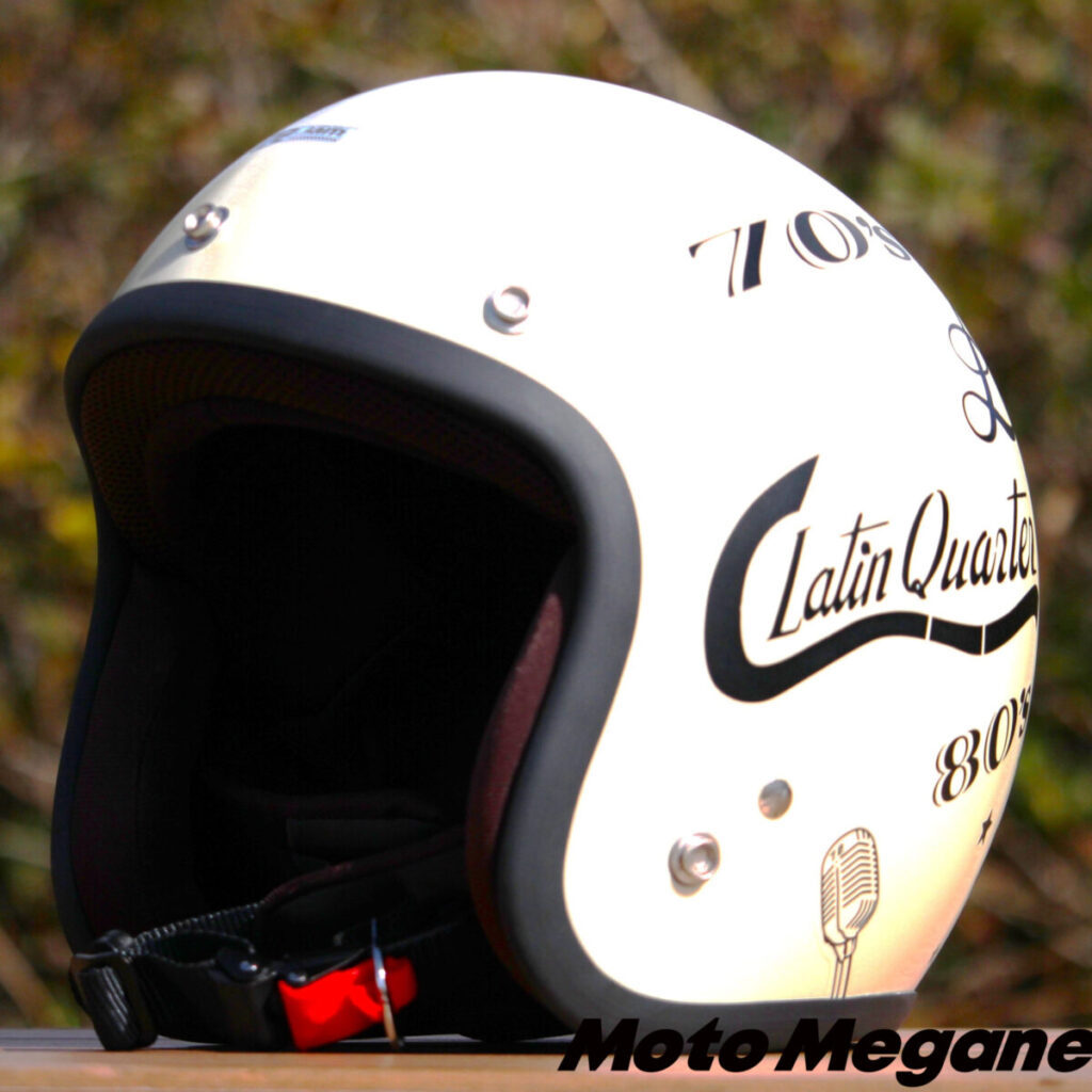 ダークカラーがメインになりがちなクルーザーやクラシックバイクに合わせれば、アイボリーの帽体とブラックの文字が映えるデザインになっている。