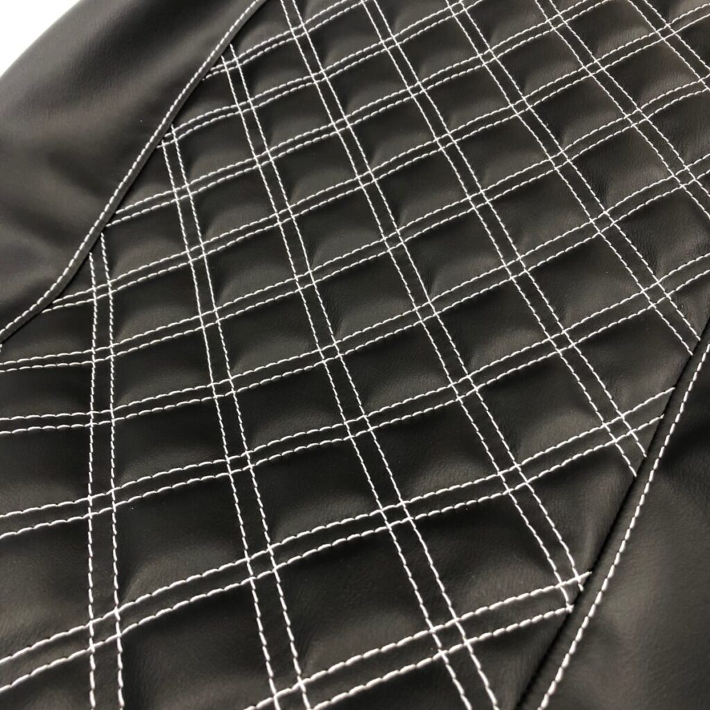 そこでシートは少しくらい派手でも良いかなと考え、黒の生地に映える白のステッチを選びました