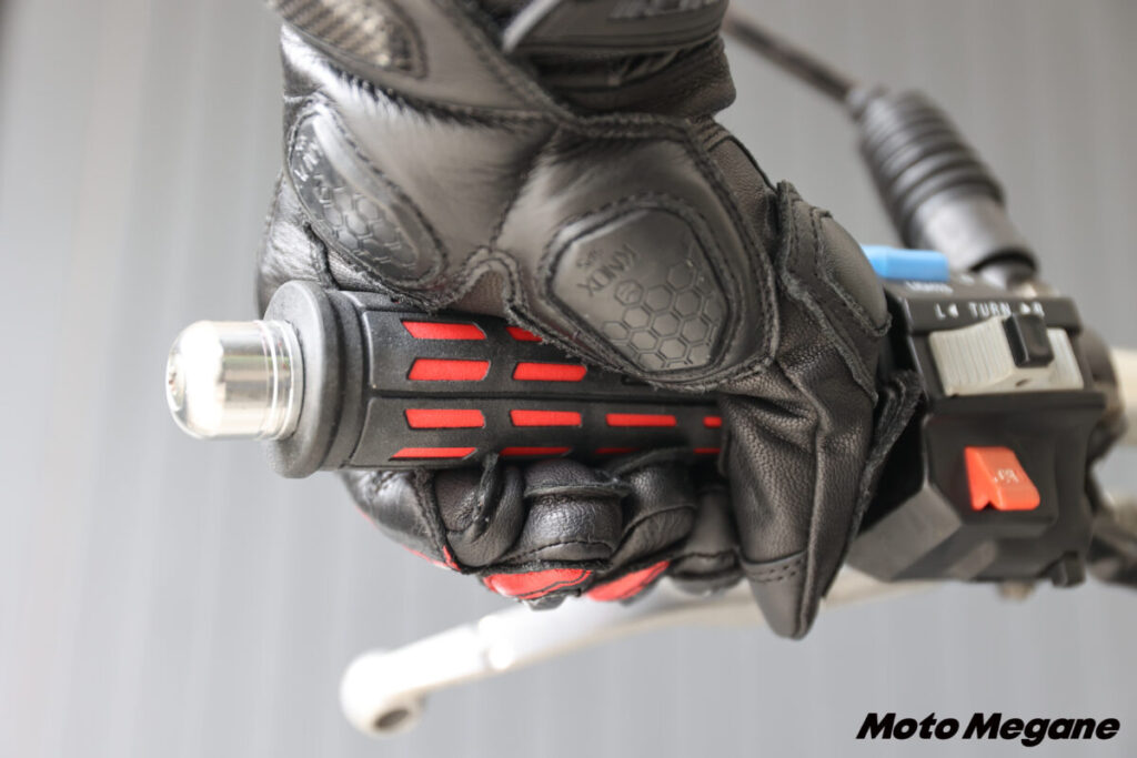 ともかく、GRIPPY GRIP(TM)の使い心地が優秀であることは分かった。これは他のモデルも試してみたくなる。部分的に膨らんだ形状で、スロットル操作をアシストしていくれるGG-D-ADVを着けて、高速道路をたくさん走るようなツーリングに出かけてみれば、きっと疲労度が違うはずだ。他のモデルにも興味津々だ。個性的で機能性も高いGRIPPY GRIP(TM)是非一度試してみて欲しい。