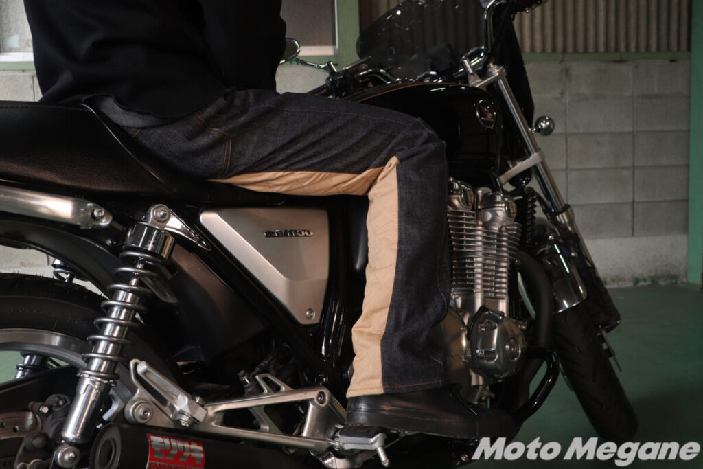 今回は児島ジーンズのスペースモンキーコンボパンツで実際にライディングを楽しんでみました。エンジンの熱で下半身が不快だと感じているライダーも少なくないと思います。真夏のライディングギアのチョイスの際には「断熱」についても考えてみてはいかがでしょう。デニム専門ブランドの児島ジーンズならではの丁寧な縫製や厳選したデニム生地は、長く履きこむほどに変化する味わいも楽しめます。そこに断熱素材を組み合わせるという斬新なアイデアを盛り込んだスペースモンキーコンボパンツは、機能性もデザイン性においても唯一無二の存在と言える1本です。