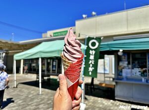 道の駅が面するR55は、海岸線に沿って走る絶景ツーリングコース。太平洋を間近に眺める景色が最高だ。道の駅は室戸岬から高知市方面に走り15分ほどの場所にあり、室戸スカイラインや室戸岬へのアクセスする際の休憩に最適の立ち寄りスポットだ。11~2月頃には運が良ければ道の駅からだるま夕日を見ることができるそうだ。