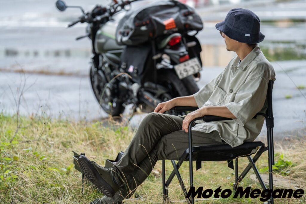 RD-902ライディングキャンプパンツは、ツーリングパンツの課題を解決するだけでなく、目的地に到着してからの行動にもフォーカスして開発した商品です。