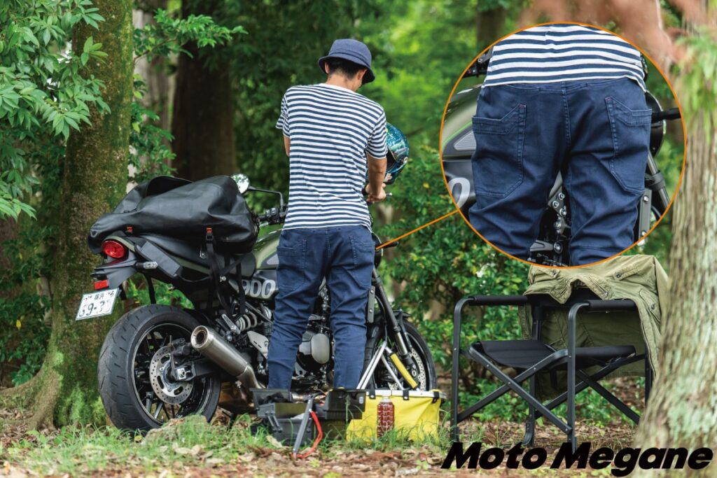 プロテクターを入れていても違和感なく穿くことができるRD-902ライディングキャンプパンツ。まるでプロテクターが入っていないかのようなスタイルです。