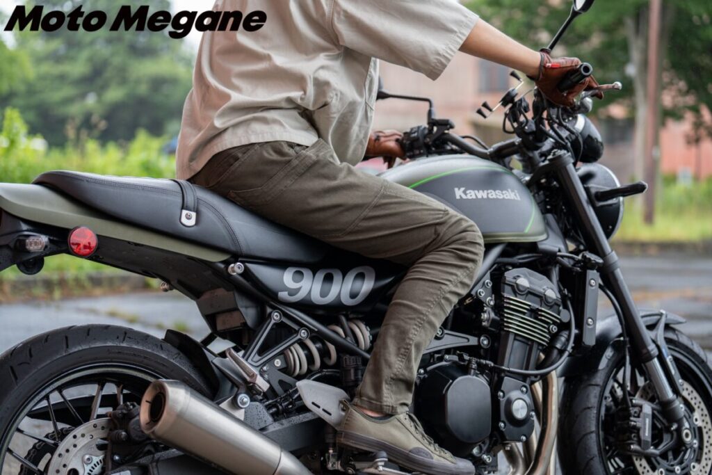 テーパードがかかったRD-902ライディングキャンプパンツは裾のずり上がりを防止し、ブーツイン、ブーツアウトどちらにも合います。全体的なシルエットもスッキリとし、裾がバタつかずライディングに適しています。