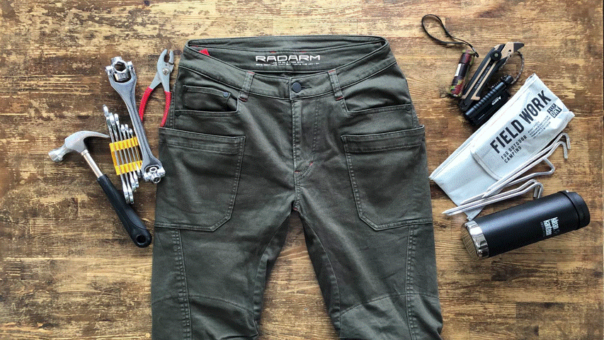 - ポケットがパツパツ、収納力のあるライディングパンツがあると便利だ…