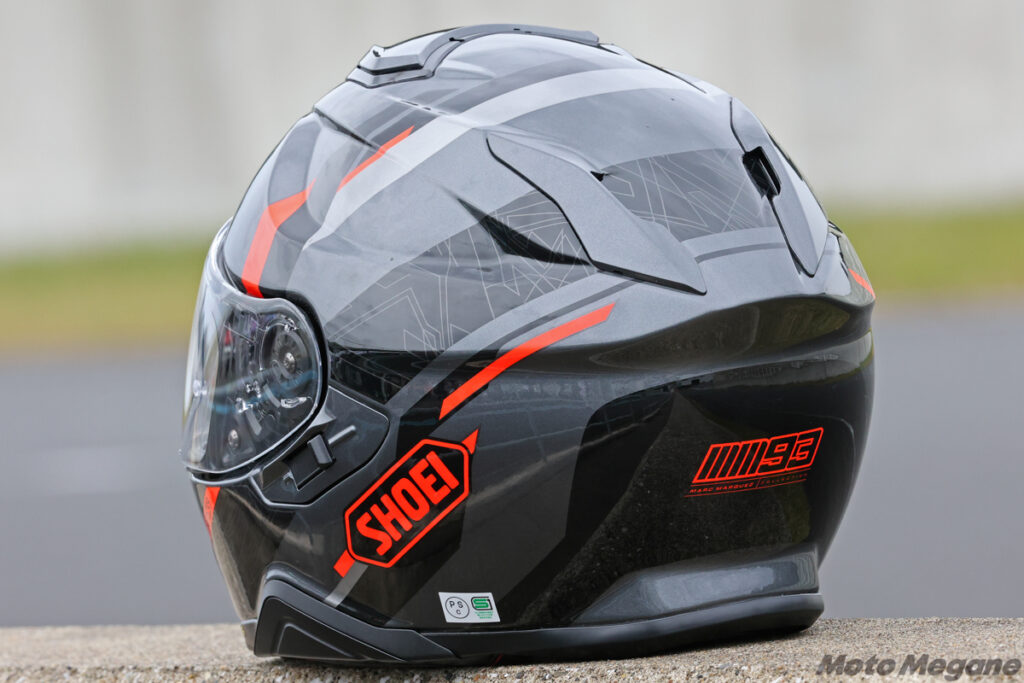 サイズはS(55㎝)、M(57㎝)、L(59㎝)、XL(61㎝)、XXL(63㎝)までタイプ。もちろんこちらも、SHOEIが展開する専用パッドを用いたサイズ調整サービスの「SHOEI Personal Fitting System(P.F.S.)」に対応している。