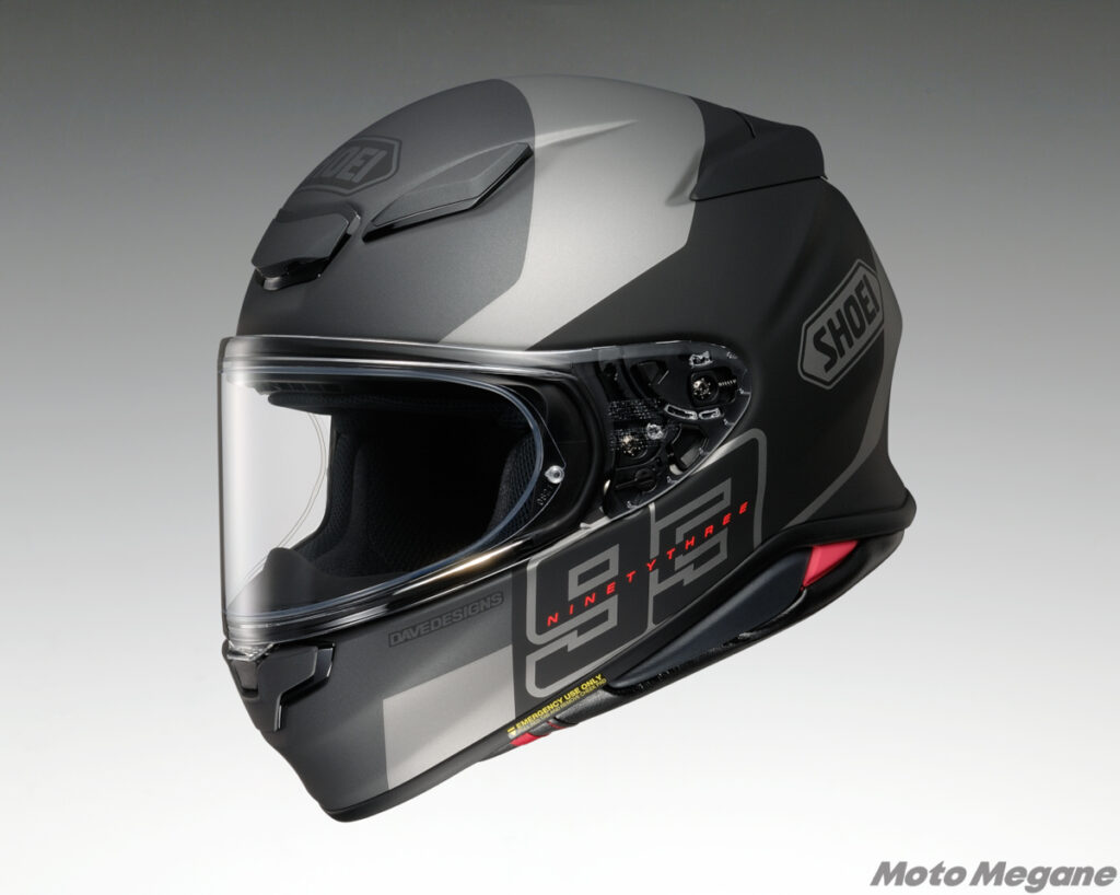 2023年から展開されるSHOEI新シリーズの「MM93 COLLECTION」は、基本となるデザインをスペインの“レーシングスタイルメーカー”で、マルケス選手をはじめとする有名ライダーのヘルメットやレザースーツなどのデザインを手がけている「DAVE DESIGNS」が担当。もちろん、マルケス選手の細かい要望も取り入れながら描かれ、SHOEIサイドのデザイナーとも綿密な調整が施されながら製品化されている。長年にわたり良好な関係を気づいてきたSHOEIとマルケス選手にとって、そのコネクションをさらに強固なものにする新たな試みであり、「今後も他の製品で同様のMM93 COLLECTIONを展開する予定」という。
