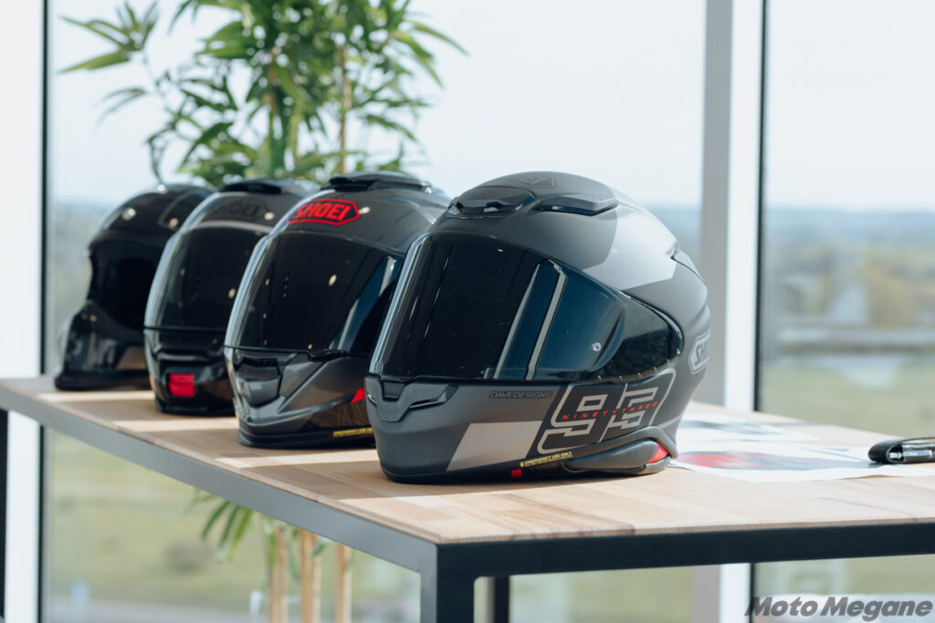 サイズはXS(53㎝)、S(55㎝)、M(57㎝)、L(59㎝)、XL(61㎝)、XXL(63㎝)まで6タイプ。このうちS、M、L、XLは独立した帽体を採用しており、これも軽量コンパクトなフォルムや適正なフィット性の実現に貢献している。もちろん、SHOEIが展開する専用パッドを用いたサイズ調整サービスの「SHOEI Personal Fitting System(P.F.S.)」にも対応している。