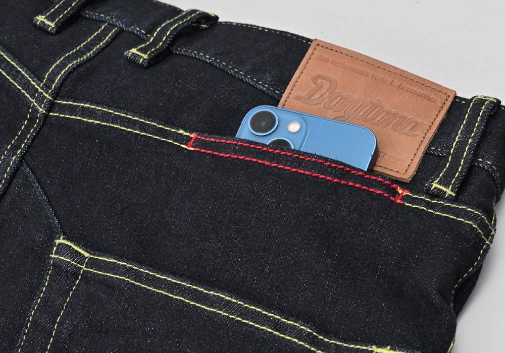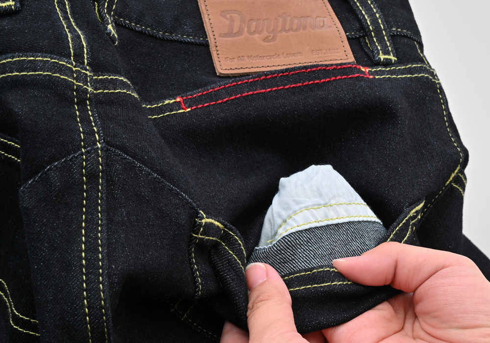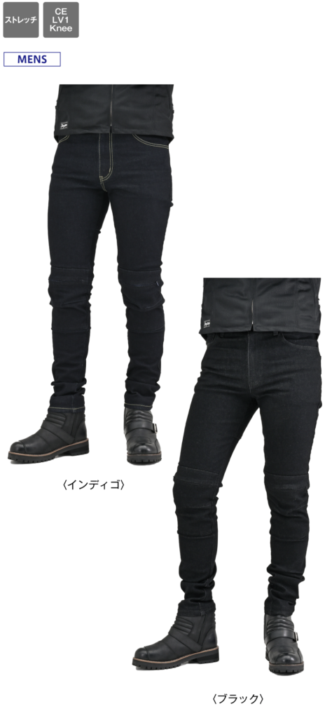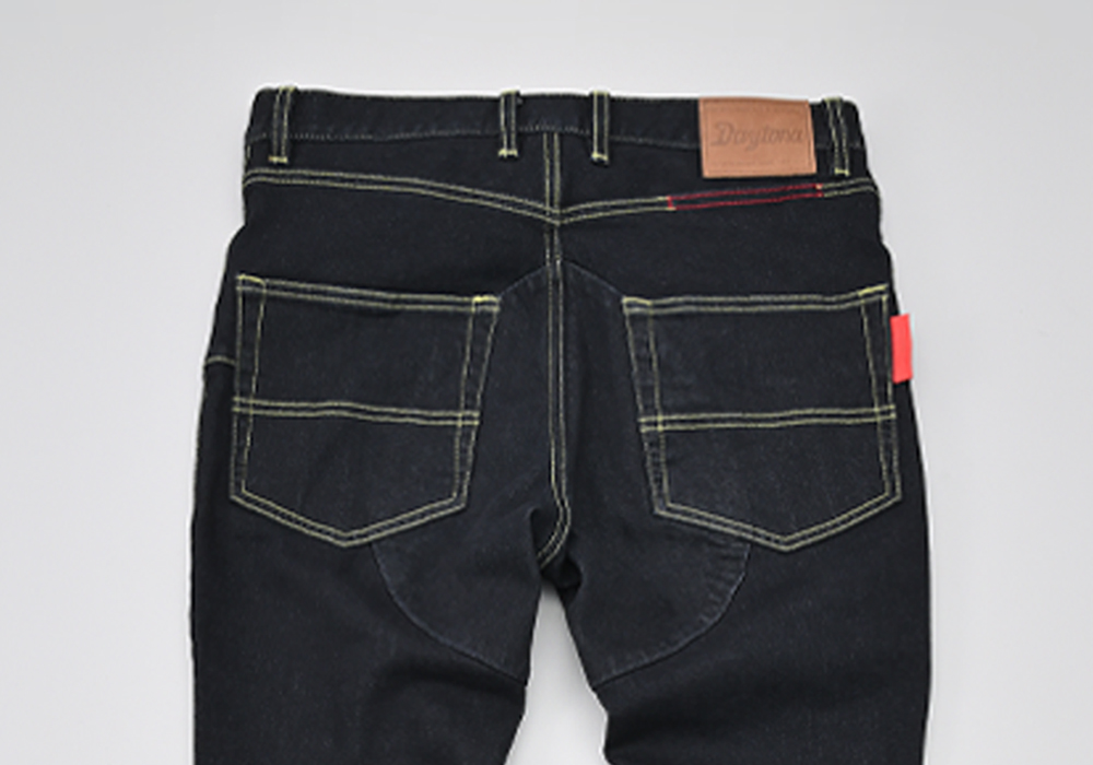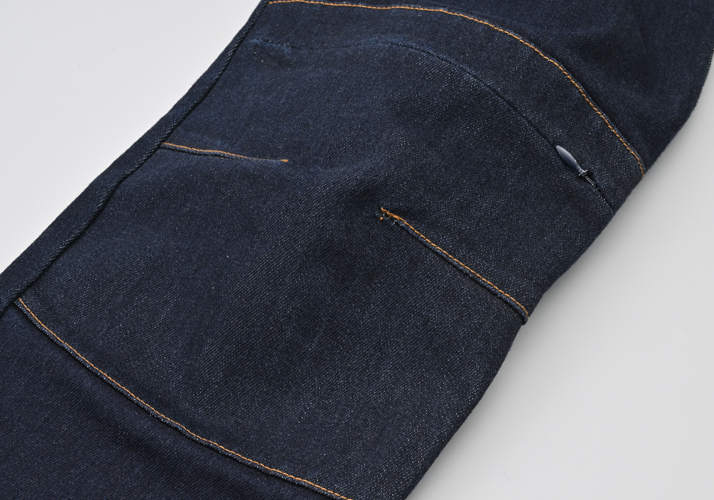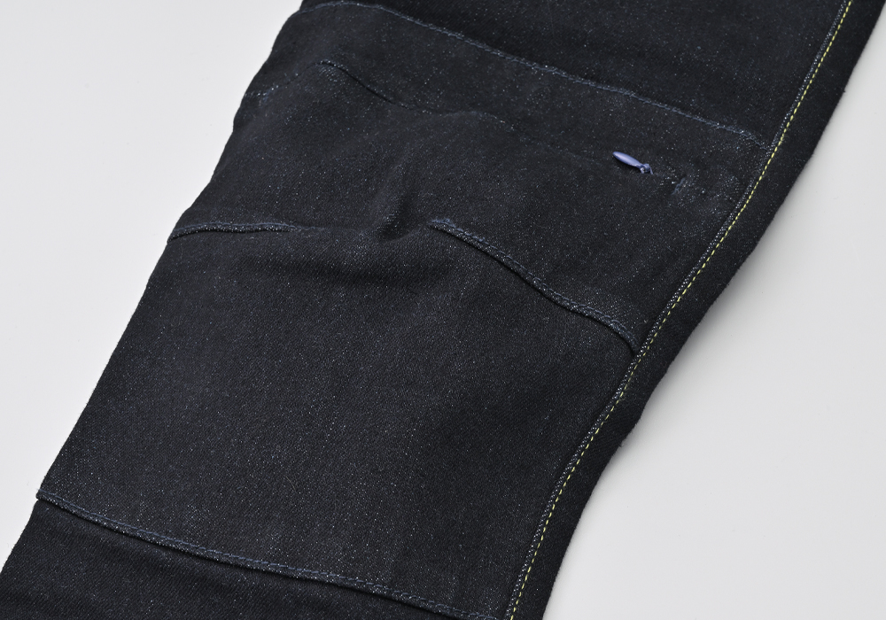 13ozのストレッチ生地を採用した伸縮性に優れ、動きやすさ快適さ重視のジーンズ。膝プロテクターポケットは外側に設置し、足の入れやすさ、履きやすさとプロテクターの外しやすさを重視しました。股下はバイクにまたがりやすいライディング姿勢にフィットする形状かつ直立時も綺麗に見えるシルエットに仕上げました。膝のプロテクターには、【CE規格】をクリアしたTRIPLEFLEXタイプのSAS-TECを標準装備。