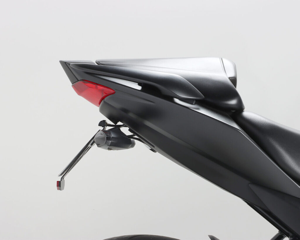 同製品は、ナンバープレートの新基準に対応しており、リア周りをスッキリしたスタイルに変更できるフェンダーレスKITとなる。価格は10,780円(税込)。