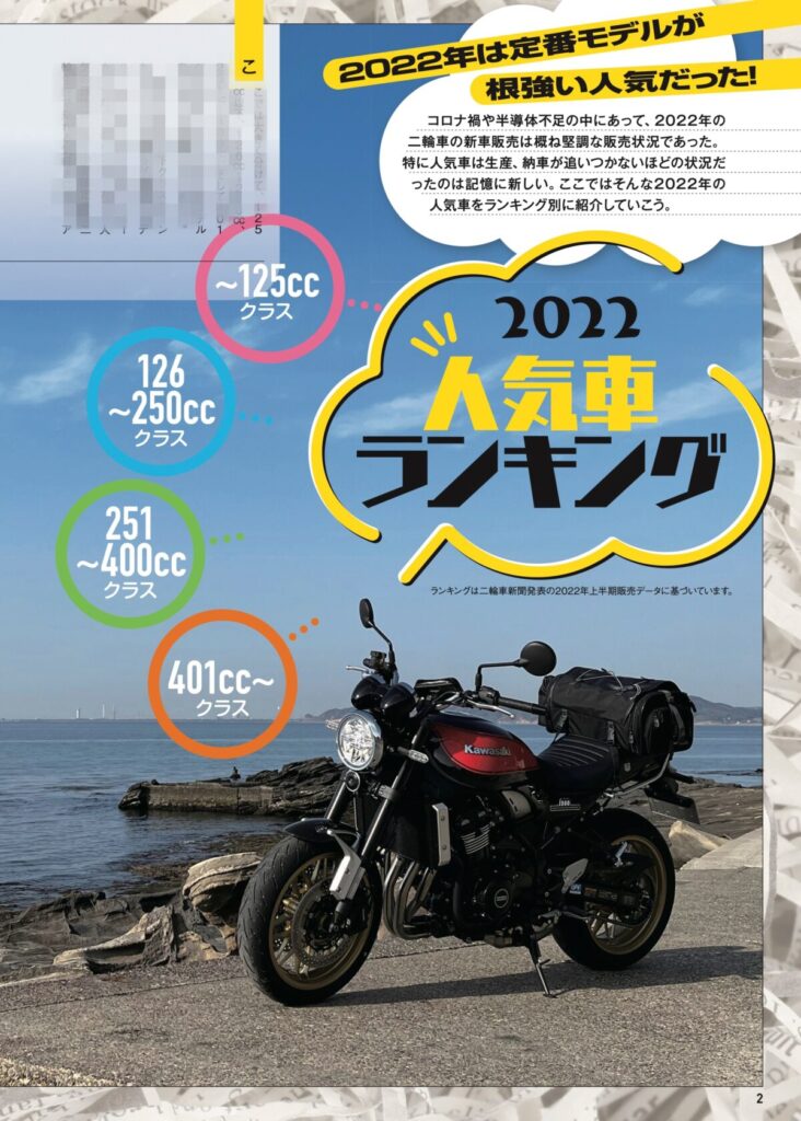 1月15日に発行するVol.10では、2022年に人気を集めた車種をランキングで特集。原付きクラス、原付き二種クラス、251cc〜400ccクラス、401cc以上の4つのクラスに分けて紹介しています。