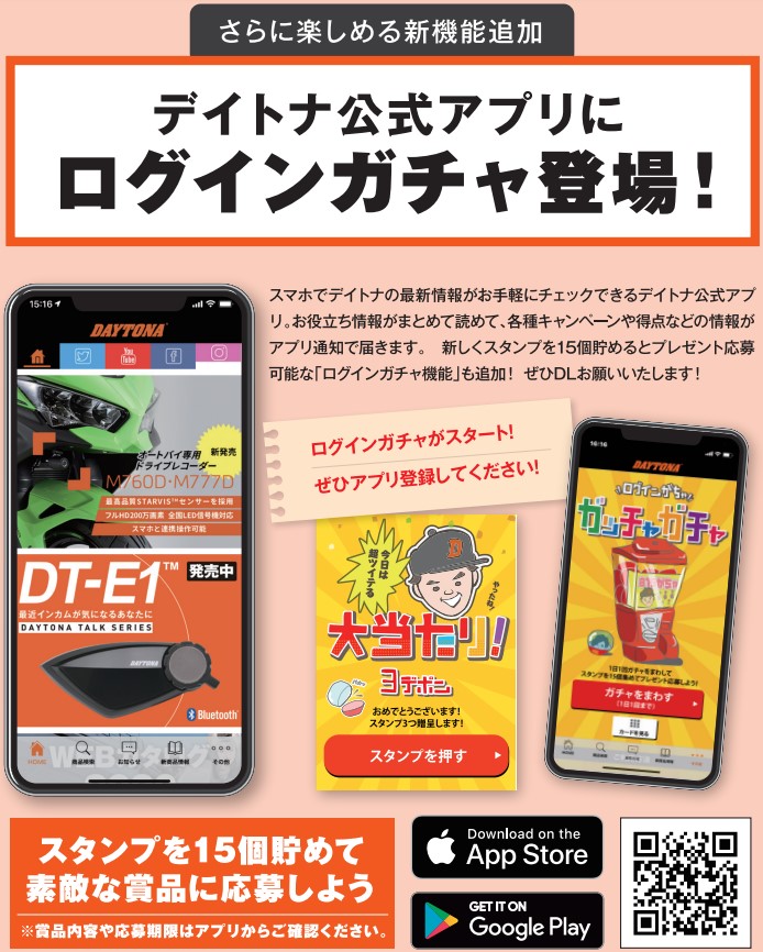 デイトナ公式アプリに「ログインガチャ」登場