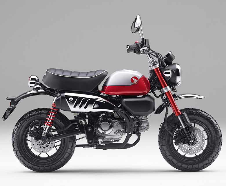 新型モンキーは、トランスミッションを4速から5速に変更し、街乗りからショートツーリングまでをより楽しくこなせる様になっている。カラーラインナップにはレッド、ブルー、ブラックが用意されており、価格はいずれも44万円(税込み)だ。