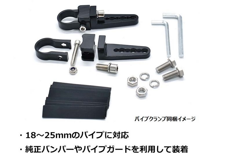 パイプクランプは純正のエンジンパイプガード(18mm)社外品のパイプクランプ(25mm)まで対応