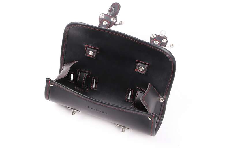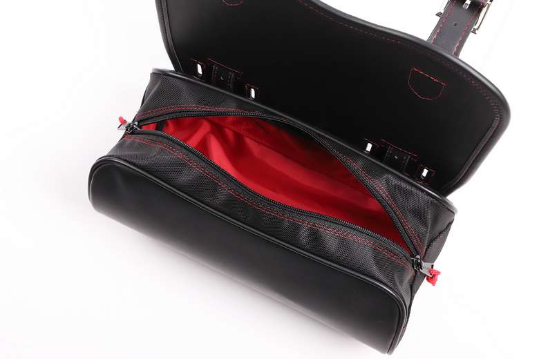 取り付けベルトや背面紐といった細部まで赤ステッチにこだわり、NB-89以外のインナーがあるモデルは、赤色の生地を使用。価格は据え置きで、愛車に合わせたカスタマイズを愉しめる。