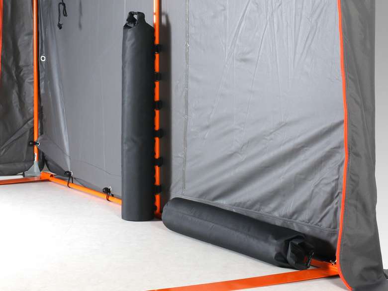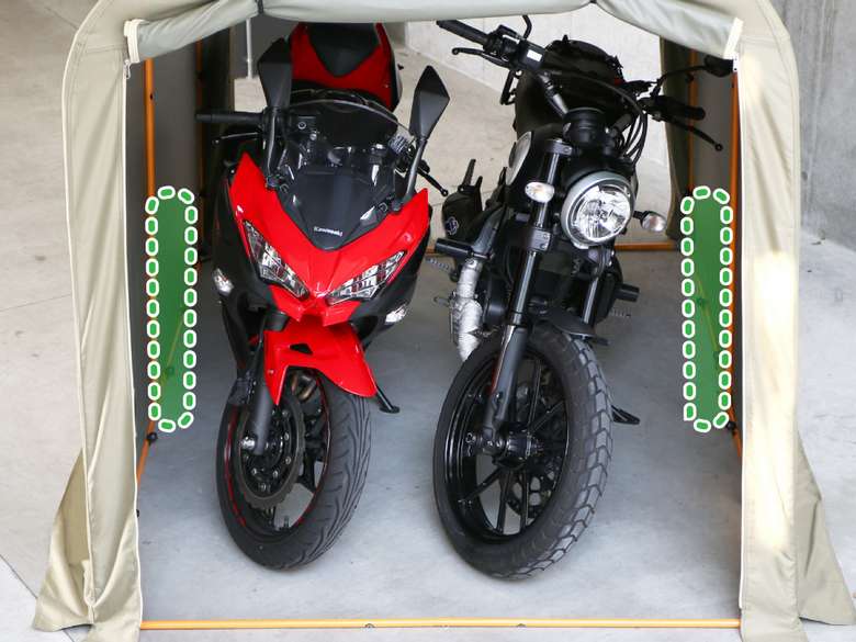 コンクリートやアスファルトなどのペグダウンが行えない環境下で、バイクガレージのウェイトとして利用できる。