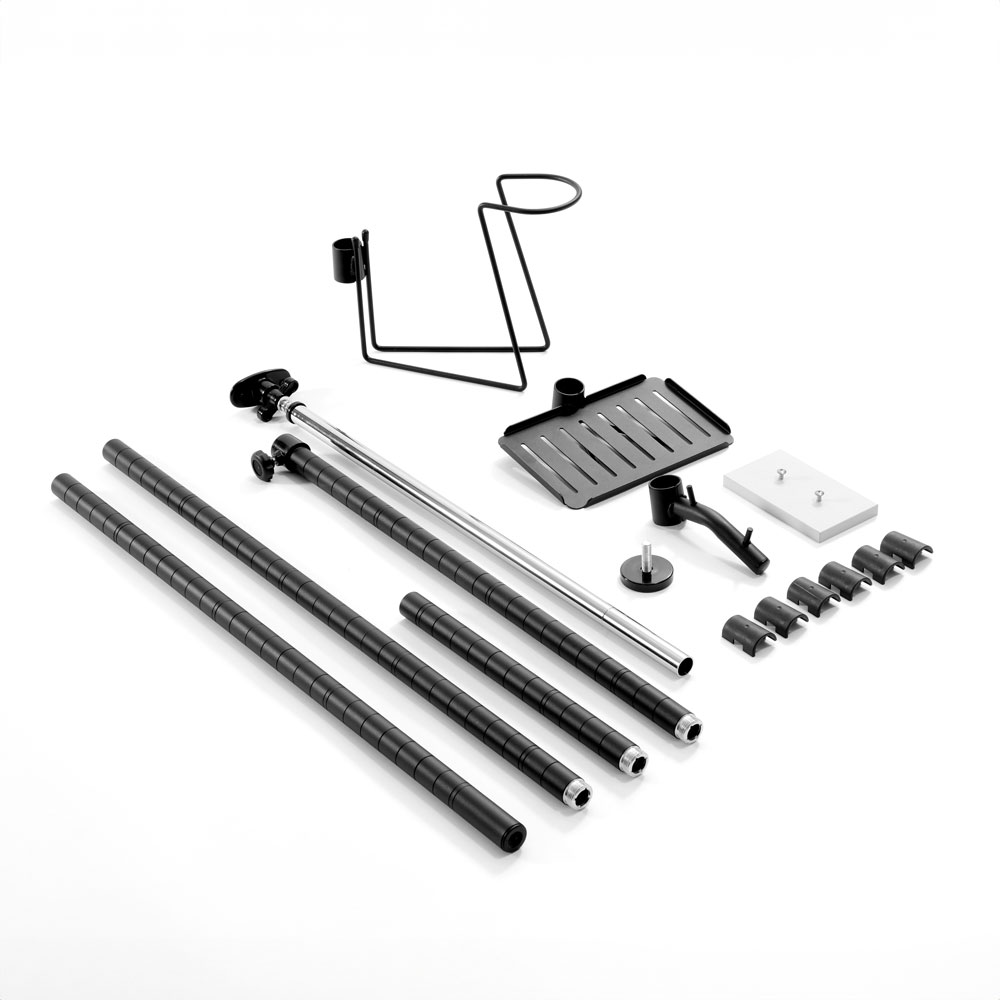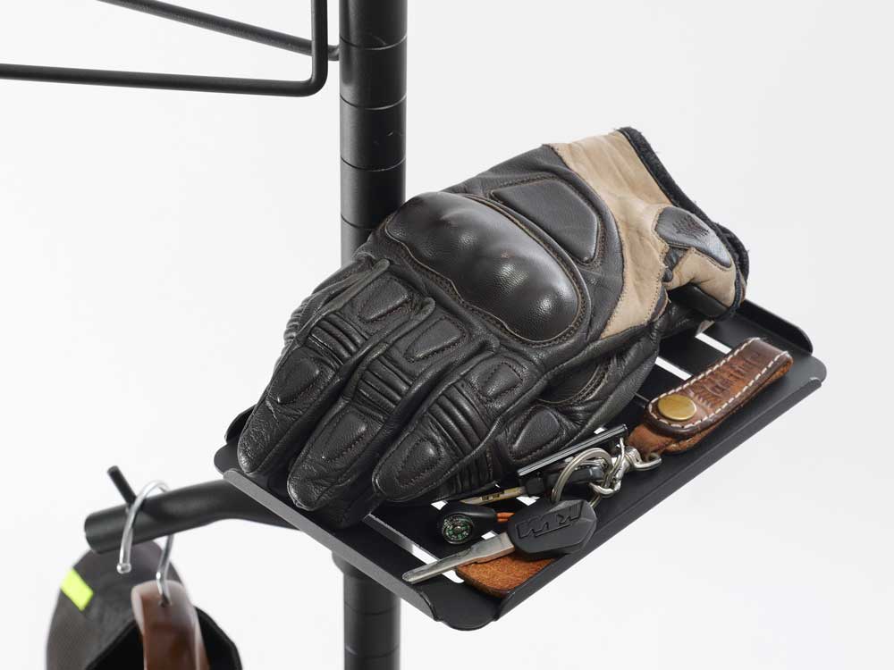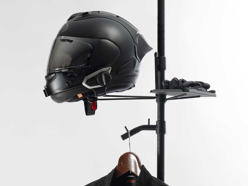 つっぱり棒タイプのワンポール形状で、限られたスペースでも設置が可能。また、ヘルメットハンガーやトレイなど各パーツの高さも変更できるため、環境や用途に合わせて自分好みに設定することができるのも特徴だ。同製品を利用して、愛用グッズをスマートに収納してみてはいかがだろうか。