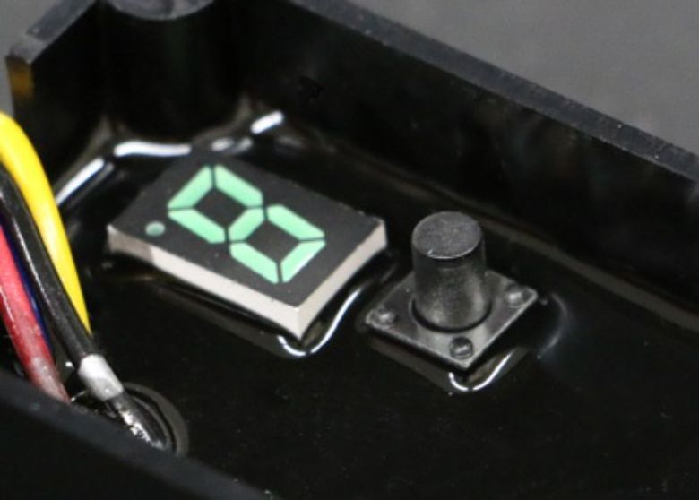 蓋を開け交換した前後スプロケットのT数や、タイヤサイズ補正をスイッチの長押し/短押しで入力していく。