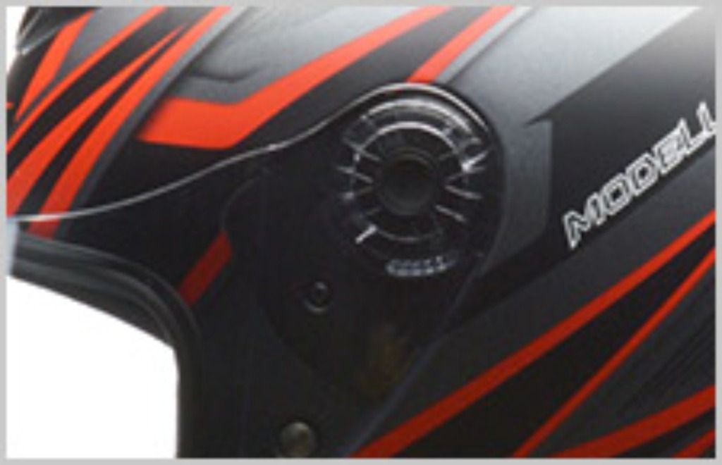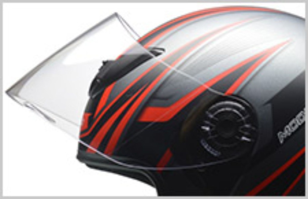 ラチェット式開閉シールドでお好みの位置に調節が可能。ハードコート・UVカット仕様。