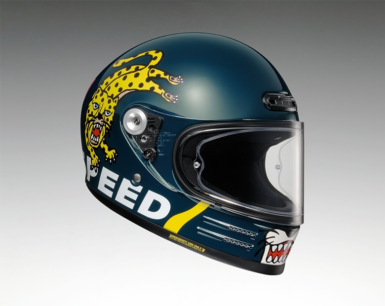SHOEIの培ってきた技術をクラシカルなデザインに落とし込み、クラシックスタイルと機能性を両立させた新たなネオクラシックフルフェイス、GlamsterにカスタムビルダーのCHEETAH CUSTOM CYCLESオリジナルグラフィックモデル“CHEETAH CUSTOM CYCLES”(チーターカスタムサイクルズ)が新たにラインナップ。