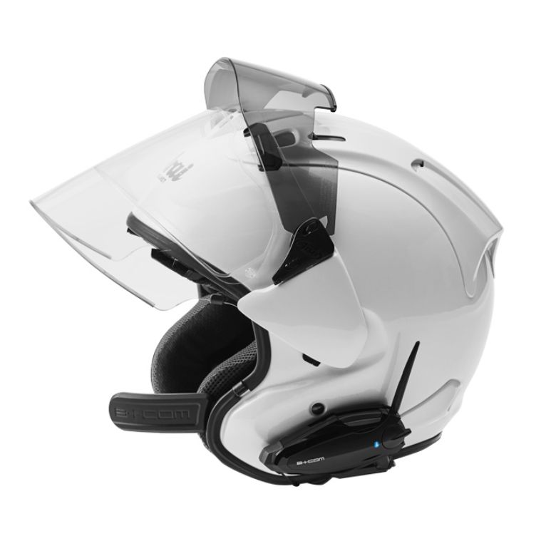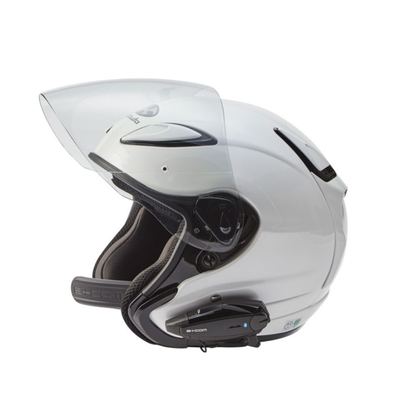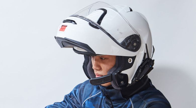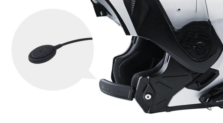 フルフェイス帽体向けとして、B+COM購入時に同梱されているワイヤーマイクが、口元スペースの広いシステム/ジェットヘルメットでも使用可能となるオプションアイテムで、シールドやチンカバーの開閉動作を邪魔することもない。