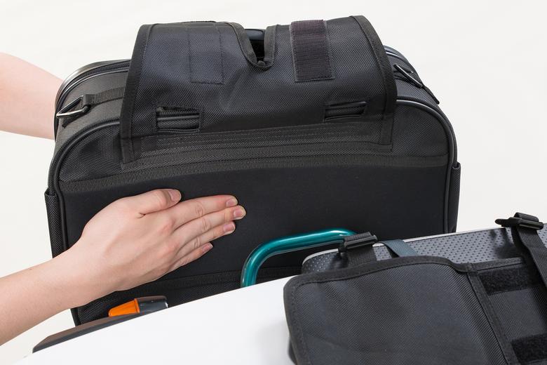 バッグ前後を「固定ベルト」で接続すれば、取り付けが完了。
