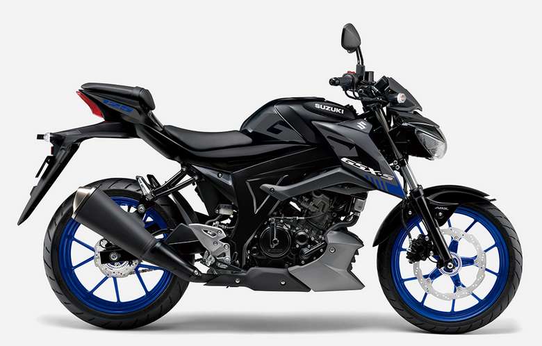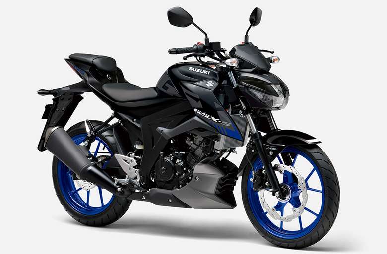 スーパースポーツ譲りのエンジンと最新技術を備えたGSX-S125 ABSは、尖鋭さが際立つトリトンブルーメタリックとタイタンブラックの2色展開で、価格は42万円、2022年4月27日(水)に発売予定。