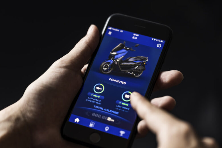 新しいNMAX155にはスマートフォンとの連携機能が備わっており、専用アプリを通して車両メーターに電話やメールの通知ができるほか、燃費管理、最終駐車位置確認なども行える。