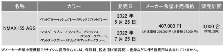 ヤマハが、水冷155cm3 BLUE COREエンジンを搭載する「NMAX155 ABS」の2022年モデルを発表した。