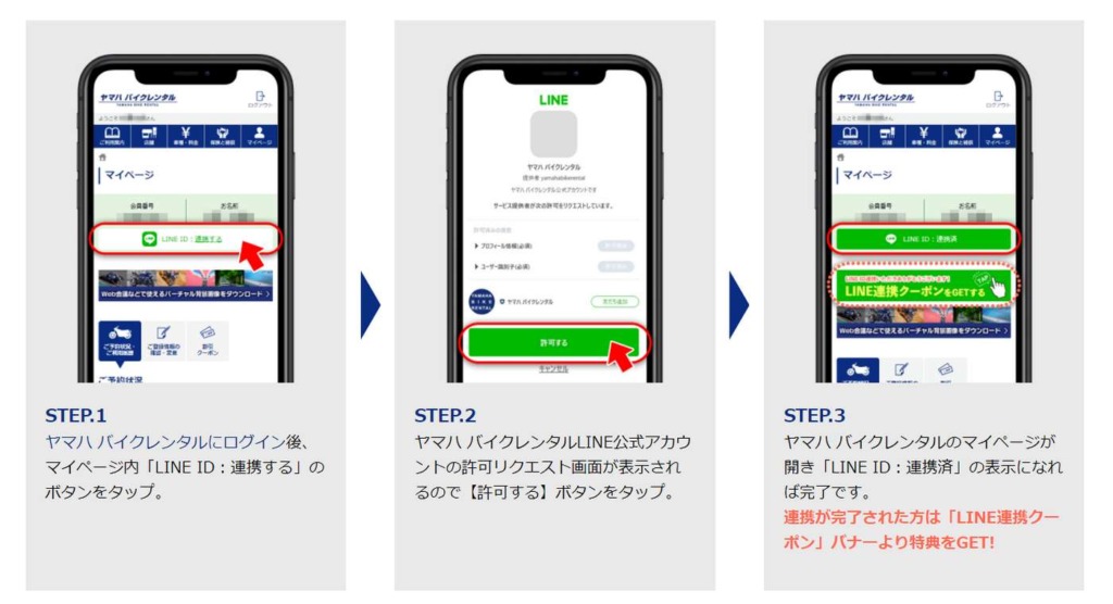 ※ID連携にはヤマハ バイクレンタルへの会員登録(無料)が必要。