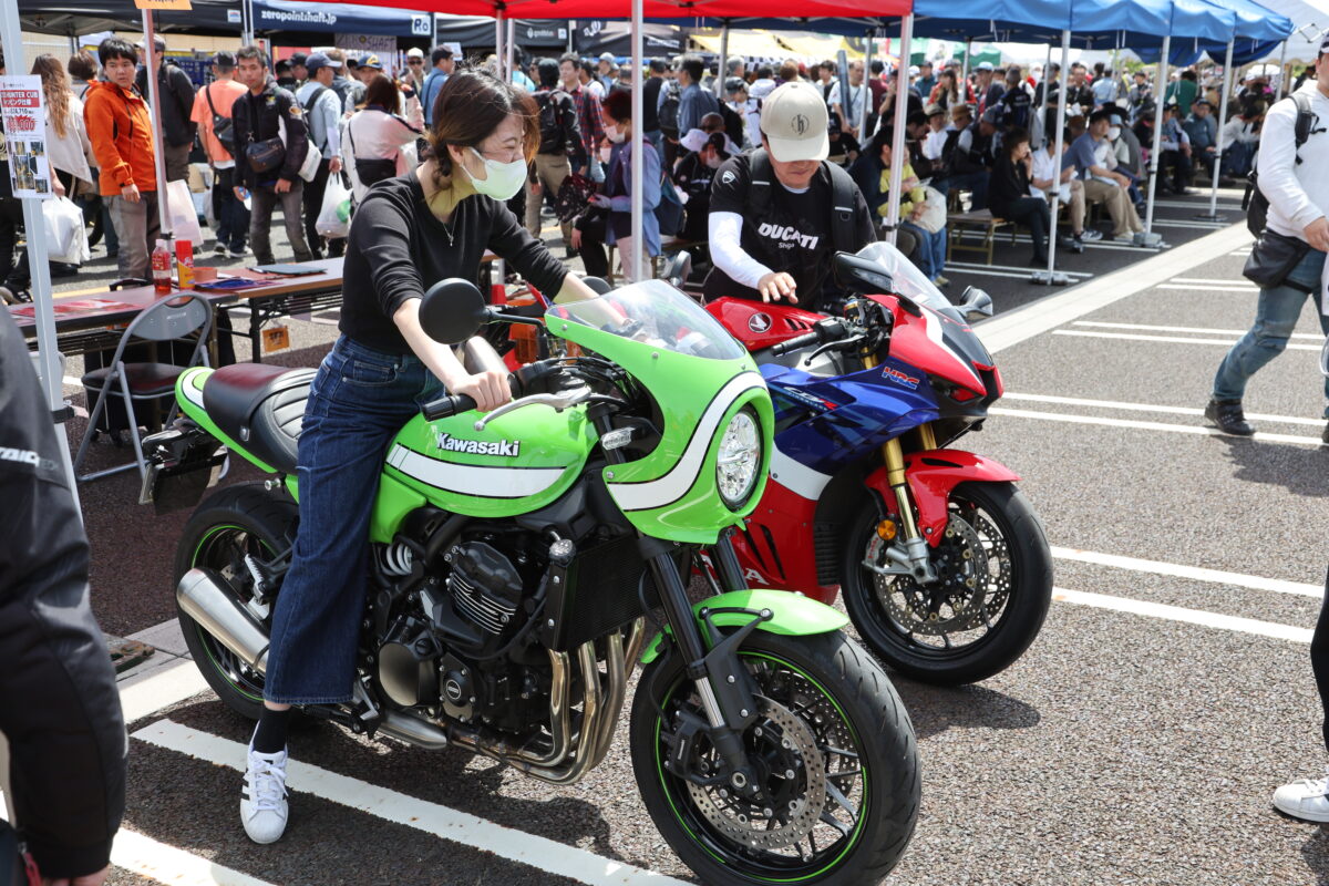 もうひとつ見逃せないのがバイク館による試乗会だ。ウワサになっていて気になる人気車種が用意されていた。開場から予約に並ぶ人が多く、あっという間に枠が埋まってしまうほど。ただし、試乗に使われていない時は「またがり自由」だったので、ライディングポジションの確認や記念撮影はたくさんの人ができた。人気スポットとなっていた。
