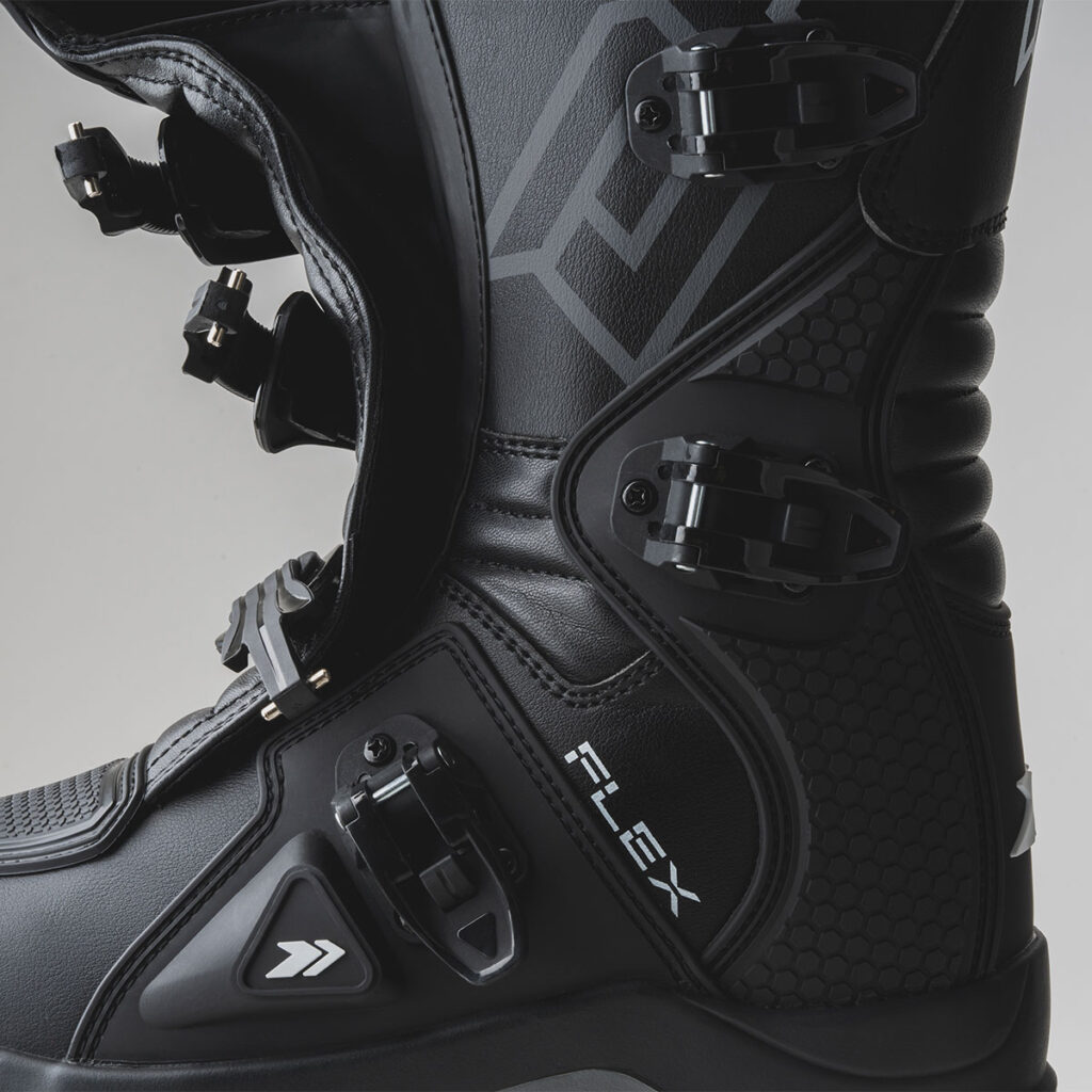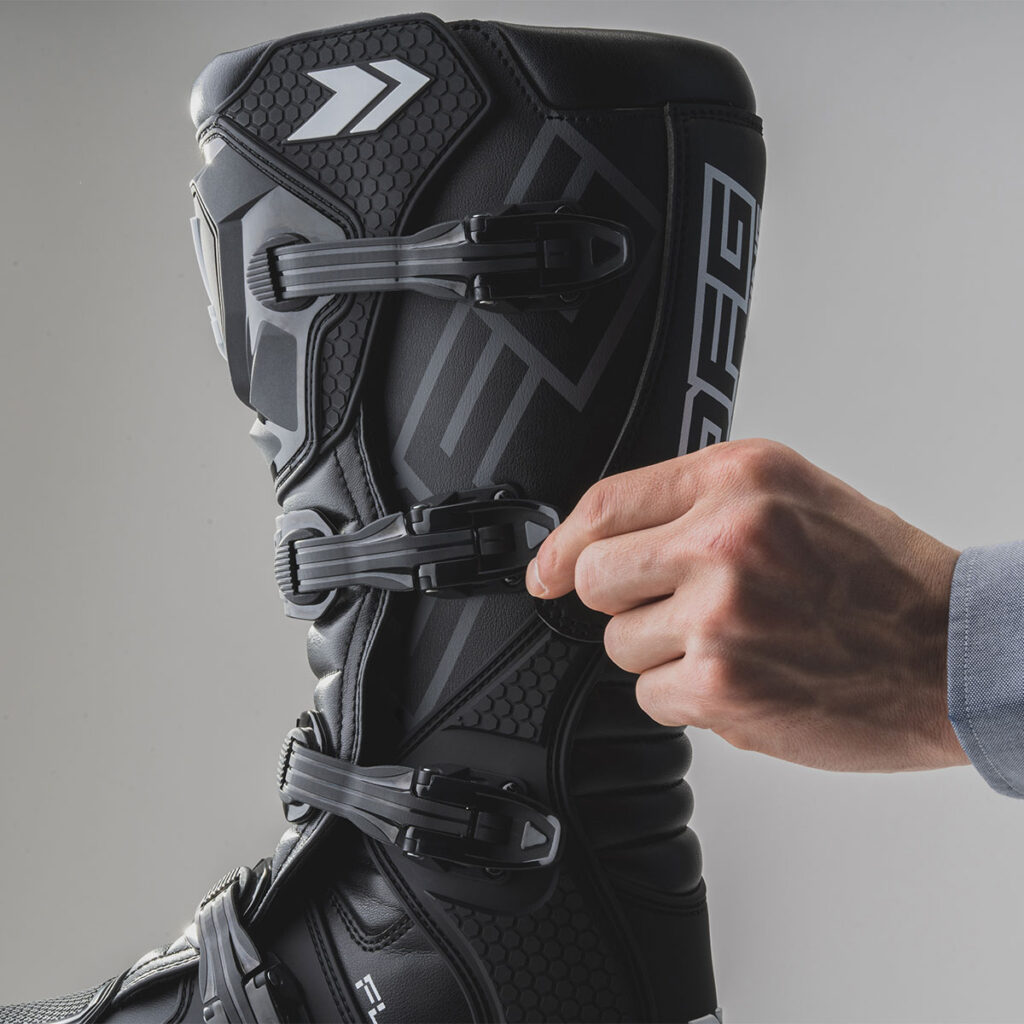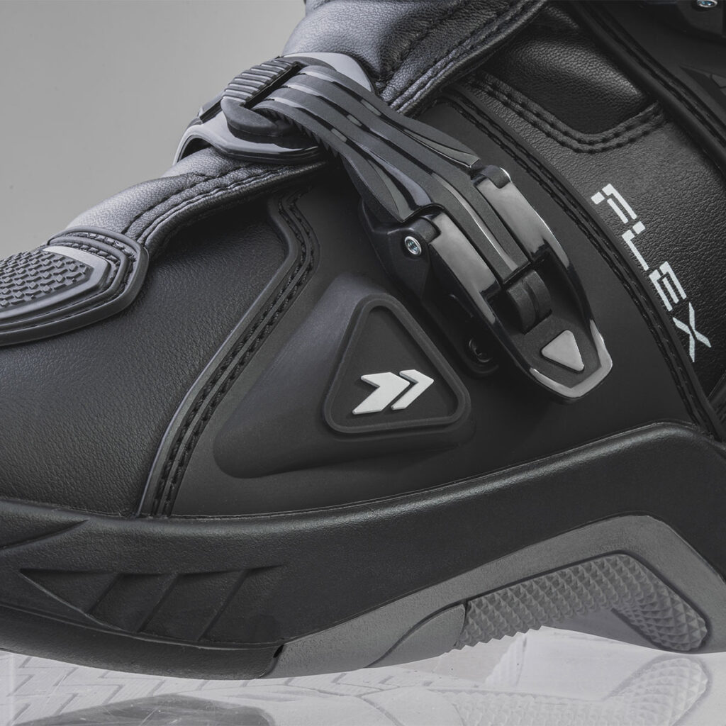 ブーツ本体は操作性を損なわずに高い強度を確保。転倒した際や障害物等から足を保護。
