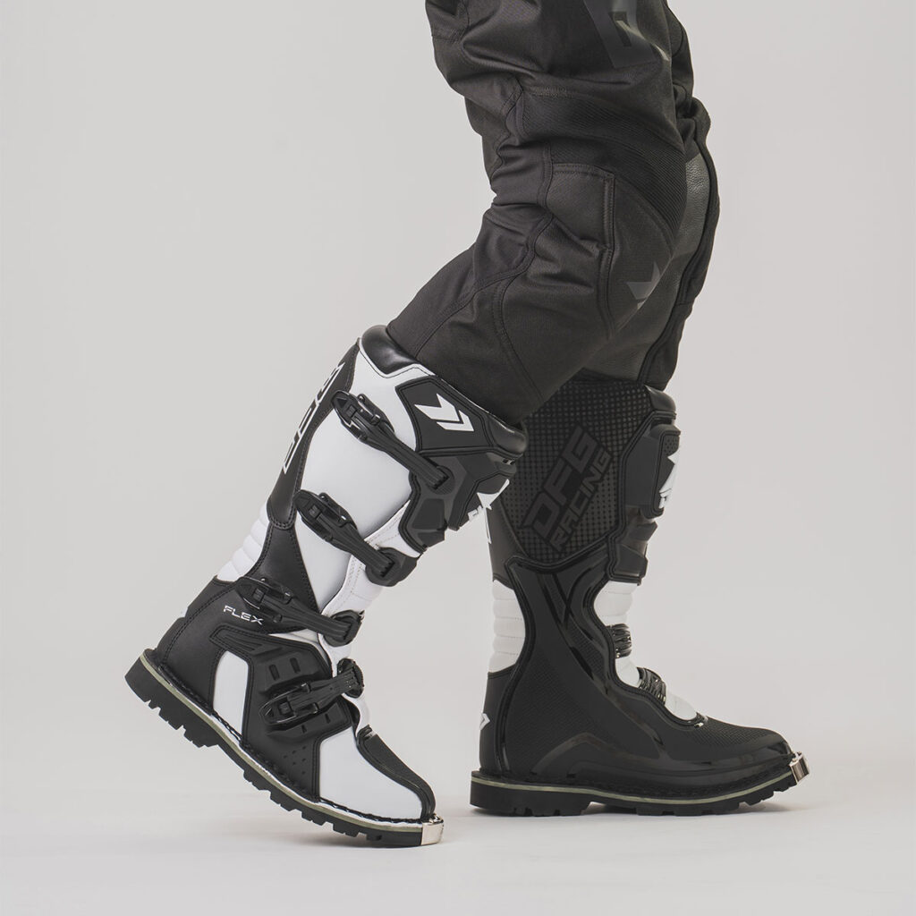 バイクパーツメーカー株式会社ダートフリークは、オリジナルブランドDFGのフレックスブーツを発売した。本格的なモトクロスコースからツーリングまで対応したフラットソールのモトクロスブーツと、本格的なオフロードコースからツーリングまで対応したブロックソールのエンデューロブーツをラインナップ。ブーツ本体は操作性を損なわずに高い強度を確保しながらも、日本人の幅広・甲高な足の形状に合わせた設計で快適なフィット感を実現。サイズ展開が豊富なのも魅力だ。価格は27,500円(税込)である。