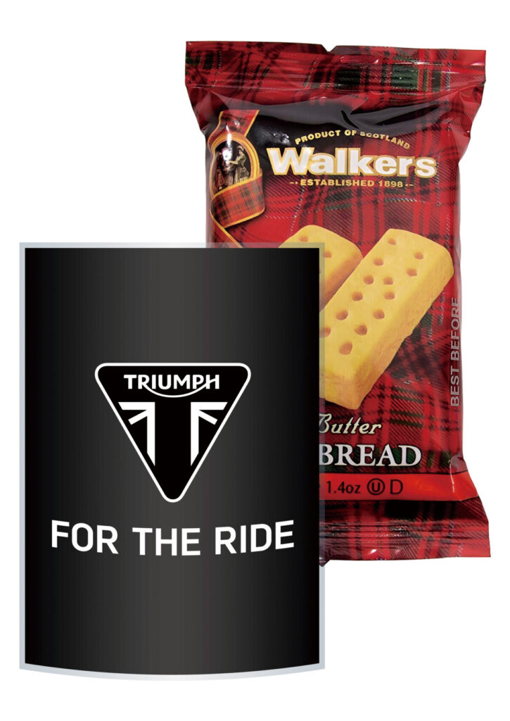 本キャンペーンは 7 月 8 日~8 月 10 日の期間中、トライアンフ正規販売店にお越しただいたお客様に、来場記念品としてトライアンフロゴがプリントされたオリジナルパッケージの「ウォーカー ショートブレッド」を、ご試乗された方には試乗記念品としてトライアンフオリジナル「保冷ショルダーバッグ」をプレゼントいたします。
