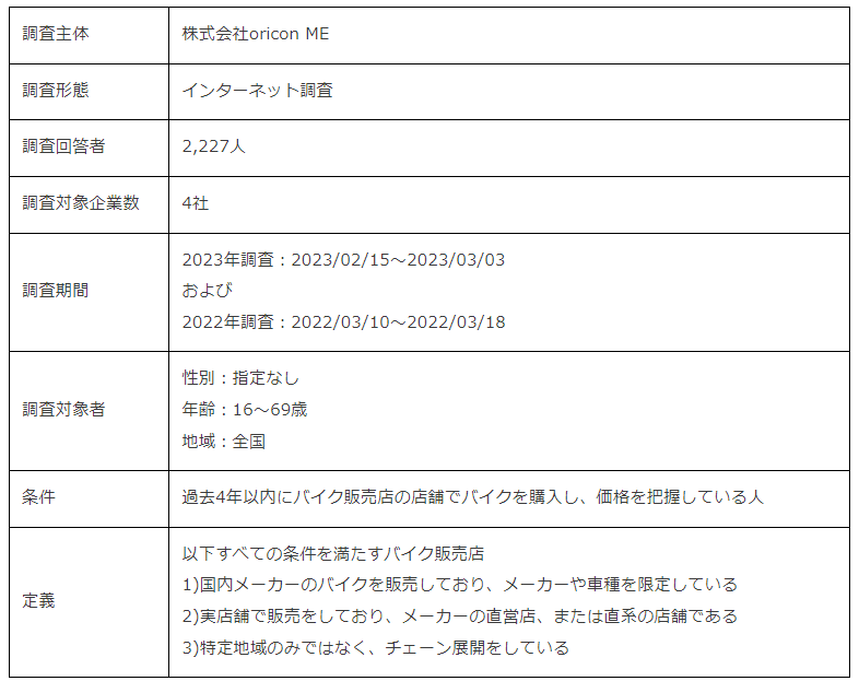 2023年 オリコン顧客満足度®調査「メーカー系バイク販売店」概要