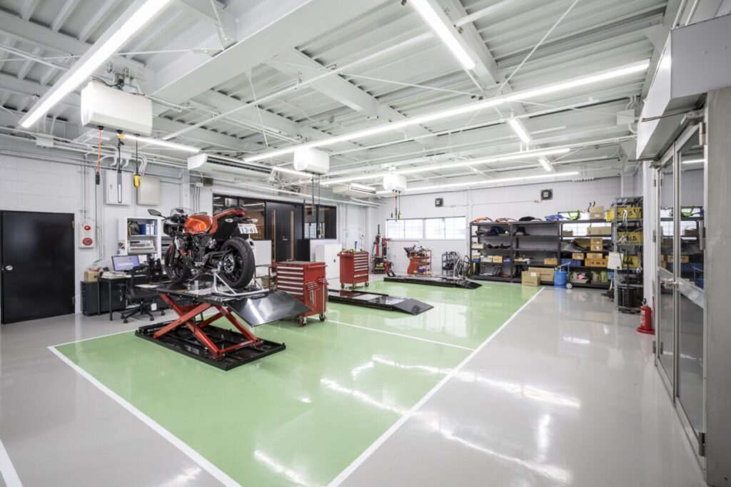 お客様に安心で、安全なモーターサイクルライフを過ごしていただくための充実したテクニカルセンター。